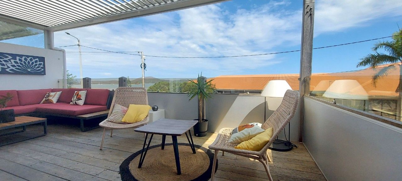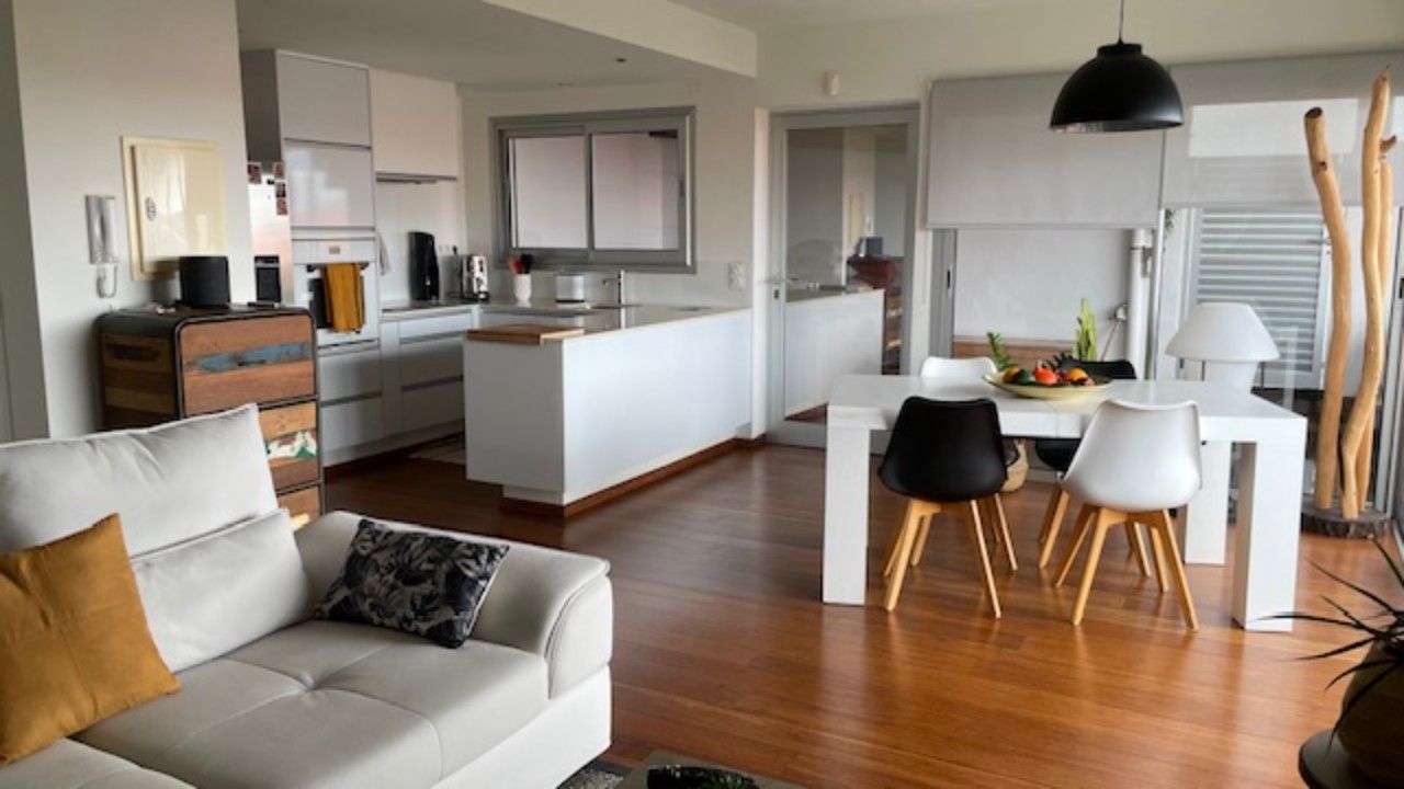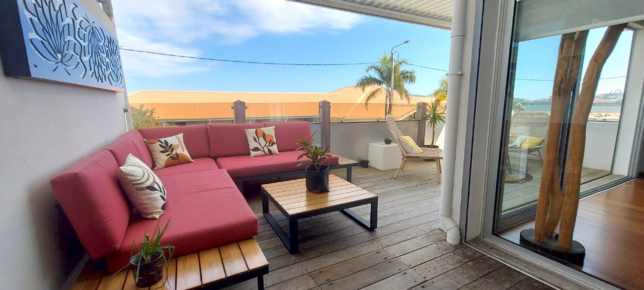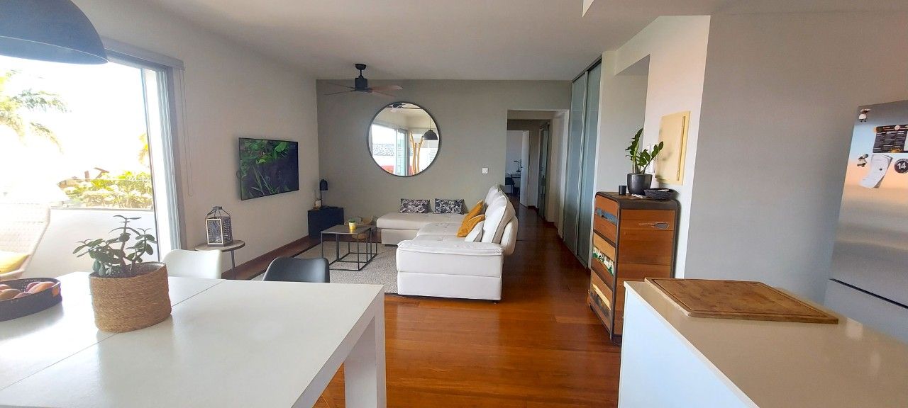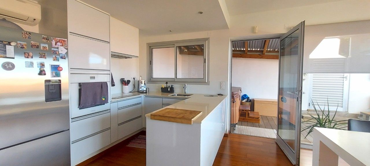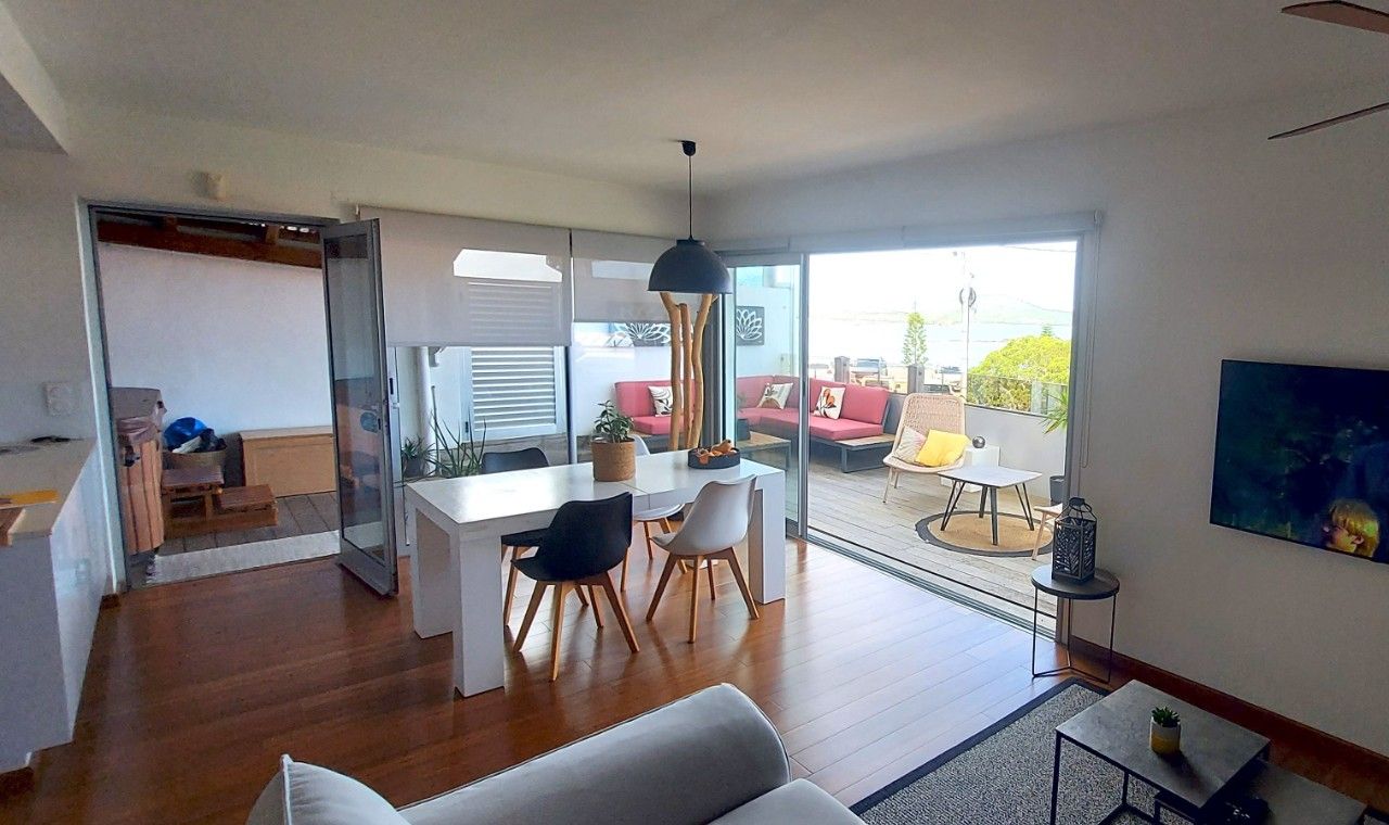 Dans une très petite résidence composée uniquement de trois appartements, venez découvrir ce bel F3 de plain-pied, accessible par un ascenseur privatif depuis les parkings. L'appartement s'ouvre sur une terrasse en angle de plus de 30 m² de deck couvert par des toitures éclipses, la terrasse dominant une jolie vue sur la mer entre l'Hôtel Le STANLEY, donnant sur un séjour/salle à manger au style contemporain avec cuisine américaine fonctionnelle et qualitative, puis un dégagement aménagé de placards, w-c séparé, deux chambres avec placards, climatisée dont une parentale avec salle d'eau attenante avec w-c, la seconde salle d'eau séparée face à la seconde chambre. Beaucoup de charme, prestations raffinées, portes coulissantes en verre, châssis fixes en verre pour laisser rentrer la lumière et profiter de la vue de part et d'autres, l'appartement est proposé à la vente avec deux places de parkings, et le spapool sur la terrasse couverte. Exclusivité à découvrir avec Sophie, prix justifié. Charges mensuelles de 20 000 Frs Cfp pour l'appartement. Contact au 78 37 04 pour les visites